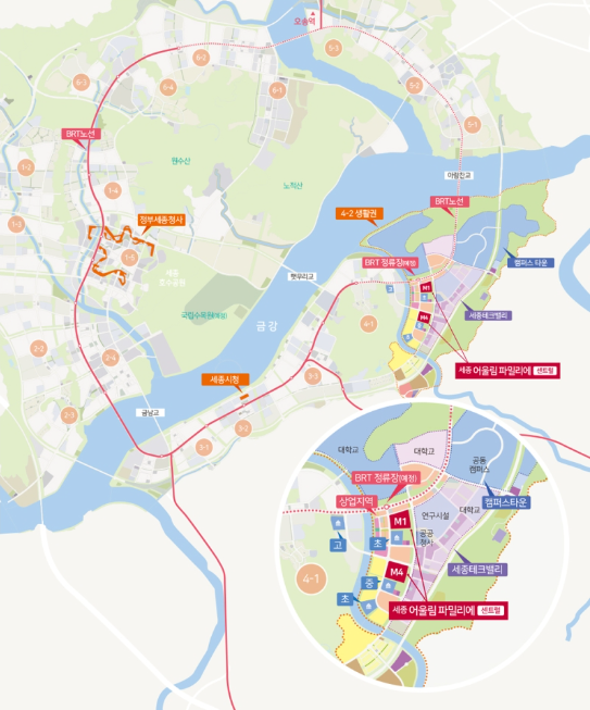 세종 어울림 파밀리에 M1, M4 단지의 경우 BRT(간선급행버스)와 같은 교통 확장성, 세종시의 지속적인 개발 계획을 기반으로 하여, 안정적인 시세 상승이 기대됩니다.